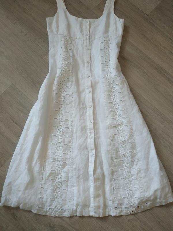Нежное летнее платье. Лен и прошва, смотрится очень красиво. Легкая, идеально для летней жары. Новая вещь. Длина 112, бретели можно делать длиннее, пог 44, по шву кокетки 39, бедра 56