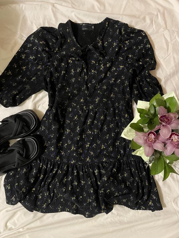ну очень классное платье, не подчеркивает живот! имеет несколько характерных деталей: • Свободный крой с присборенной тканью, создающей объем и легкость. • Ботинки и оборки в нижней части, что придает легкость. • Пышные рукава, напоминающие фасон “фонарик”. • Завязка у горловины, что делает его немного более функциональным. • Ткань с жатым эффектом (crinkle fabric), что придает платью текстурность. комбинируется с разным типом обуви, от босоножек до кед. Не требует утюга. Стан на 5. Приблизительные. замеры: длина 81 пог 49 плечи 36 Очень красивый цвет, темно-синий, почти черный