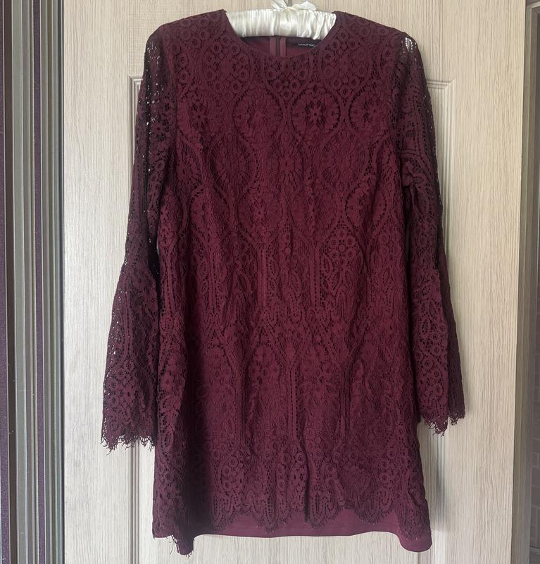 Очень красивое платье в трендовом цвете этого сезона,ткань кружево с подкладкой,легантные рукава прозрачные,позади на молнии.Длина 80 см,груды 50 см,талия 47 см,плечи 39 см, доставка по почте в день оплаты, присмотритесь и другие лови там много интересного для всей семьи
