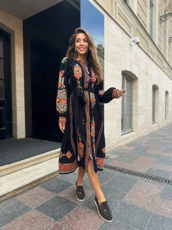 Новинка !!! Арт 5690 Платье-вышиванка под пояс в украинском стиле!! Размер: С.М.Л Производитель: Турция Состав: 80% хлопок+20% полиэстр Замеры: Полуобхват груди по изделию: S-57 см, M-59 см, L-62 см Объем бидер: S- 63 см, M- 65 см, L-67 см Длина изделия: S-120 см, М-121 см, L-122 см Длина рукава от горловины S-71 см, М- 71 см, L-72 см