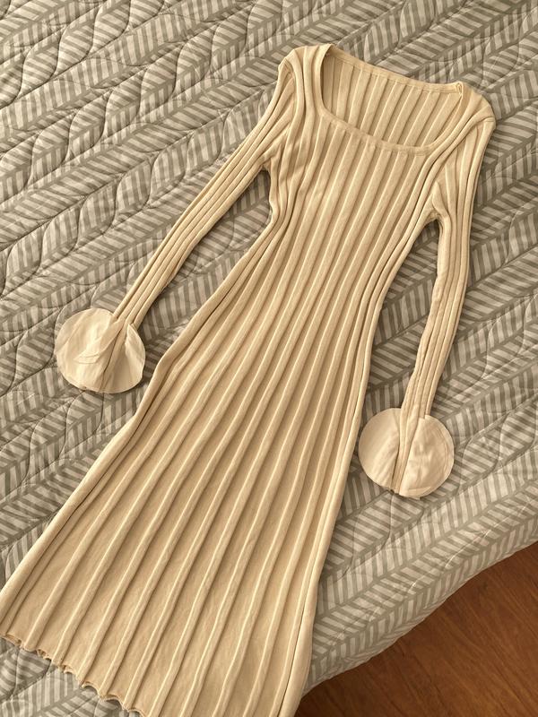 Приталенное платье с красивыми рукавами (на одном рукаве присутствует незаметный брак, при носке не видно, на фото показала)