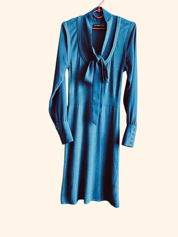 Продаю елегантну сукню бірюзового кольору від бренду Atmosphere. Добре підходить як для офісу, так і для особливих випадків! Фасон: приталений крій, довгі рукави, комір з бантом. Особливості: елегантні манжети з гудзиками, м'яка та комфортна тканина.