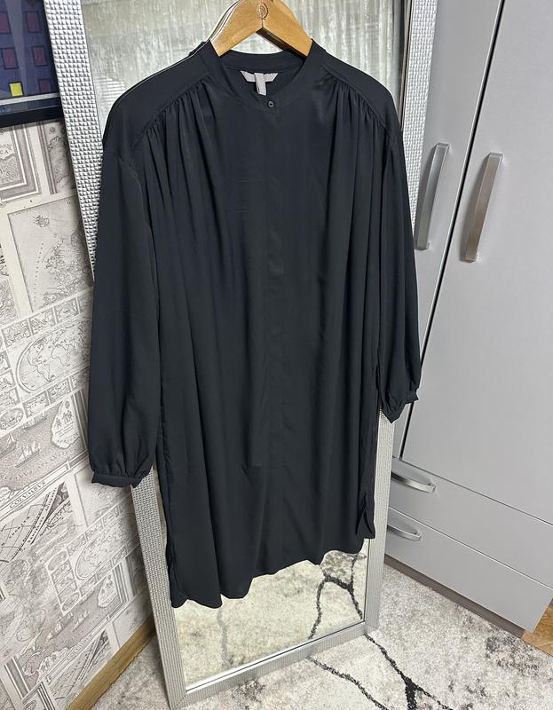 Поясок не входит в платье. Можно носить с поясом и без. На последнем фото незаметный дефект ( несколько затяжек). Длина 107 см, полу объем груди 72 см, длина рукава от шеи 74 см, полу объем талии 76 см, пол объем бедер 79 см. Подойдет от размера м до Хл.