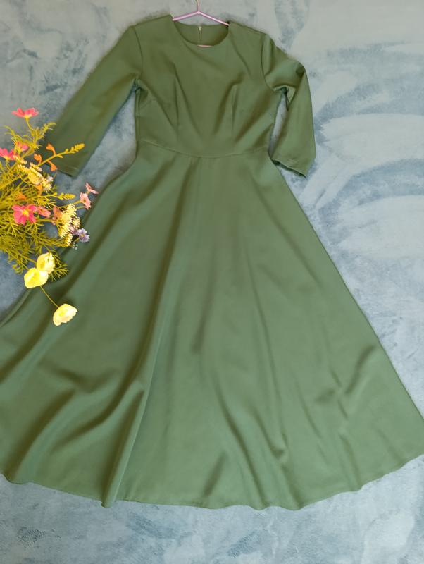 Элегантное платье изумрудного цвета, длина ниже середины голени