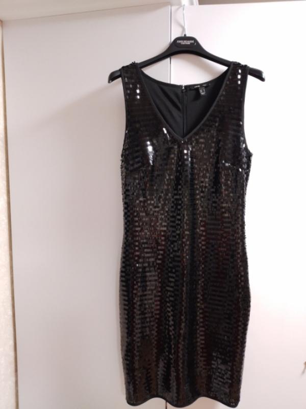 Очень красивое плання из пайеточной ткани угольно черного цвета, на тонкой трикотажной подкладке. длина от плеча 94 пог 43 поб 43 ширина по низу 42 cтан нового