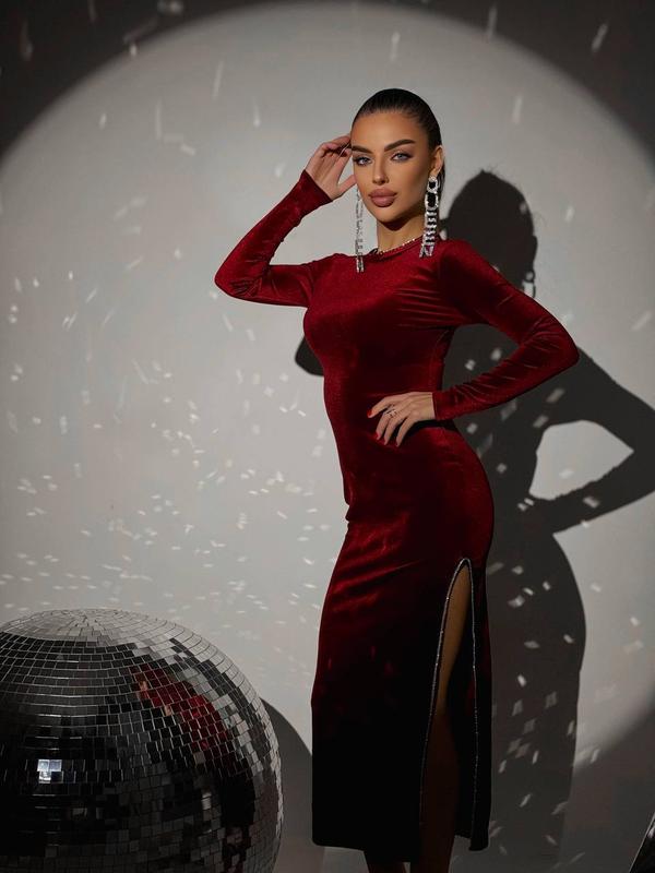 42/46 ог 80-98 см об 85-104 см длина рукава 58 см Длина платья 130 чрезвычайно очаровательное и изящное платье миди с разрезом, по разрезу камешки