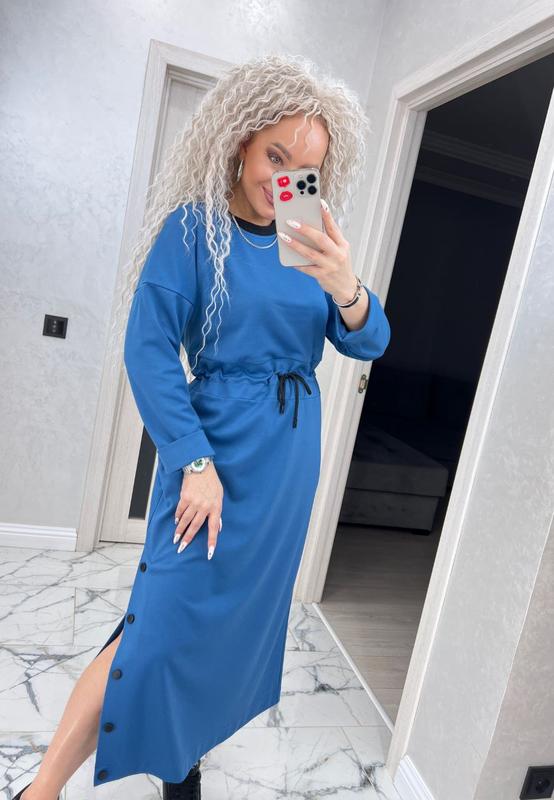 Платье класса люкс Талия на кулиске, регулируется фасон оверсайз или приталенный. Рукав можно регулировать отворотом на 3/4, что сделает ваш образ более легким и кокетливым. Рабочие кнопки на ножке, вы можете сделать сексуальный разрез или оставить закрытым. Идеальный вариант платья на каждый день в прохладные осенние дни или сексуальное приталенное платье с разрезом на любой праздник – собирай сама и играй со своим образом в нашем шикарном платье. Материал: итальянский трикотаж Джерси. Не линяет, не скатывается, легкий и приятный на ощупь. Размеры: 42-44, 46-48, 50-52 Цвета: джинс, черная, морская волна, беж, серо-шоколадный Цена: 815 грн