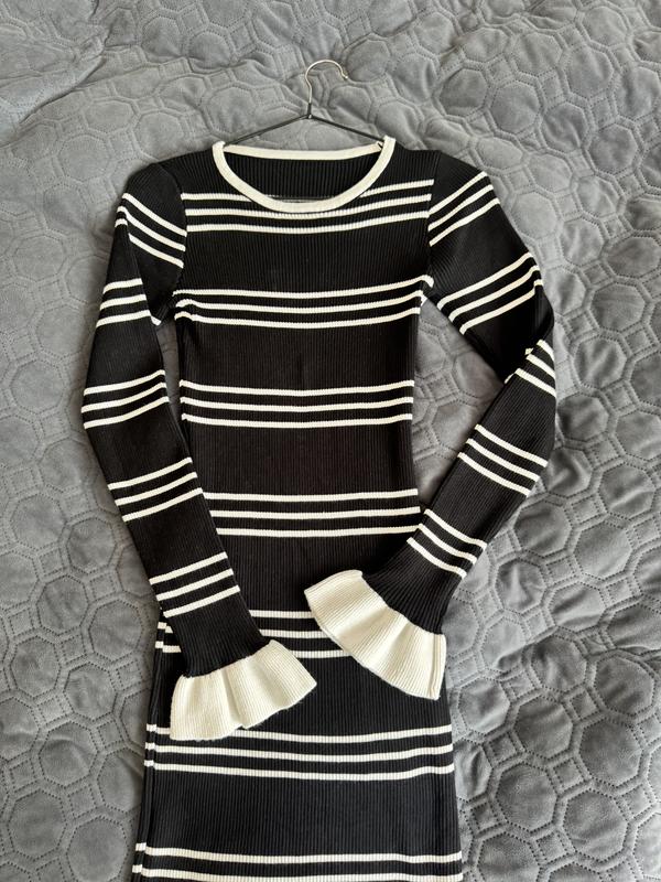 Очень классное и стильное и приталенное платье. С эффектным рукавом. Стан идеален всего 1 раз одевала. Длина чуть выше колена. Классно подойдет на размер с-м. Трикотаж хорошо тянется
