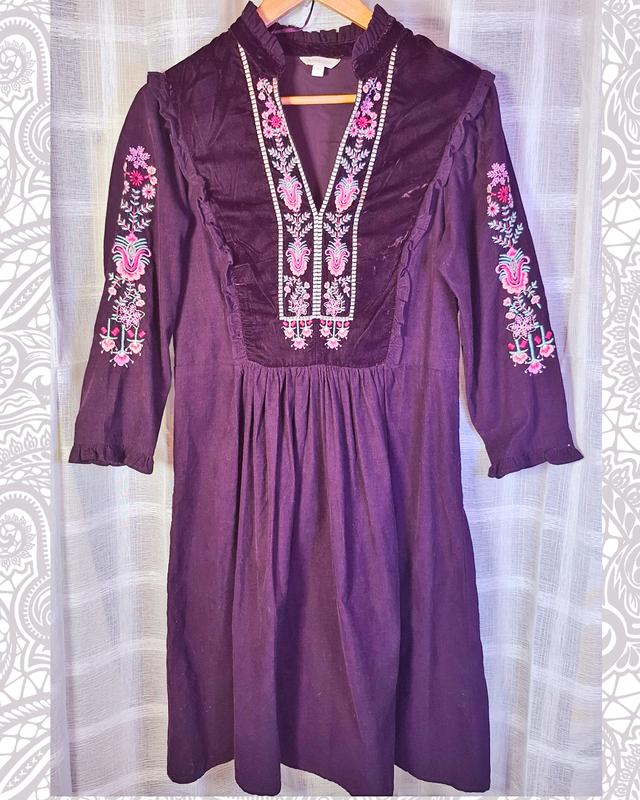 Невероятная красота - фиолетовое, полностью вышитое платье из вельвета и бархата от Monsoon, размер S Замеры полуоборота: Плечи 39 Груди 44 Талия 40 До талии 37 Рукав 45 Длина юбки 57 Состояние: новый без бирки Состав: 100% хлопок Отдам при 550 грн.