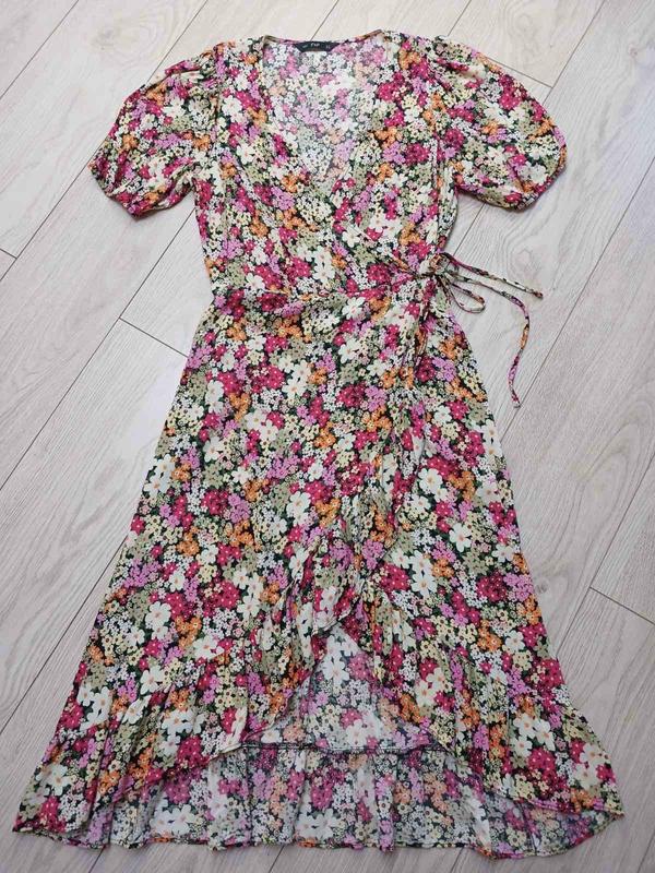 Сукня міді довга літня плаття халат віскоза на запах рюша волан квітковий принт пишні рука...