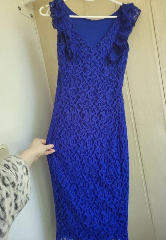 Синее платье миди ажурное платье футляр хлопок xs s кружевное платье миди ажурное платье 3...