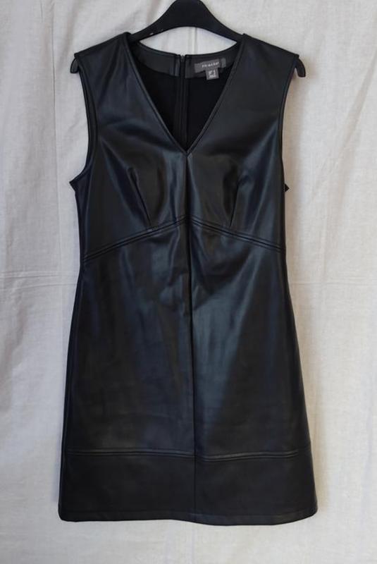 Стильное платье из качественной экокожи чёрного цвета; без рукавов; отрезная талия завышается ближе к середине изделия, сзади прямая; V- образный вырез; сзади глубокий замок; кожа на тонкой флисовой основе; известного ирландского бренда Primark. Замеры: длина -90; пог-45; по -40; поб-44; обхват низа- 108; замок-50. Размер uk-10(44)