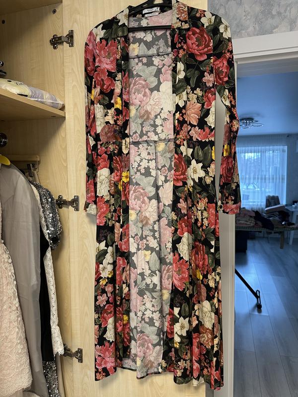 Сукня міді із натуральної тканини з квітковим принтом RESERVED Розмір 36 Підійде на S, або невеликий М Дууууже гарний принт Насичені кольори Має пояс з такої ж тканини