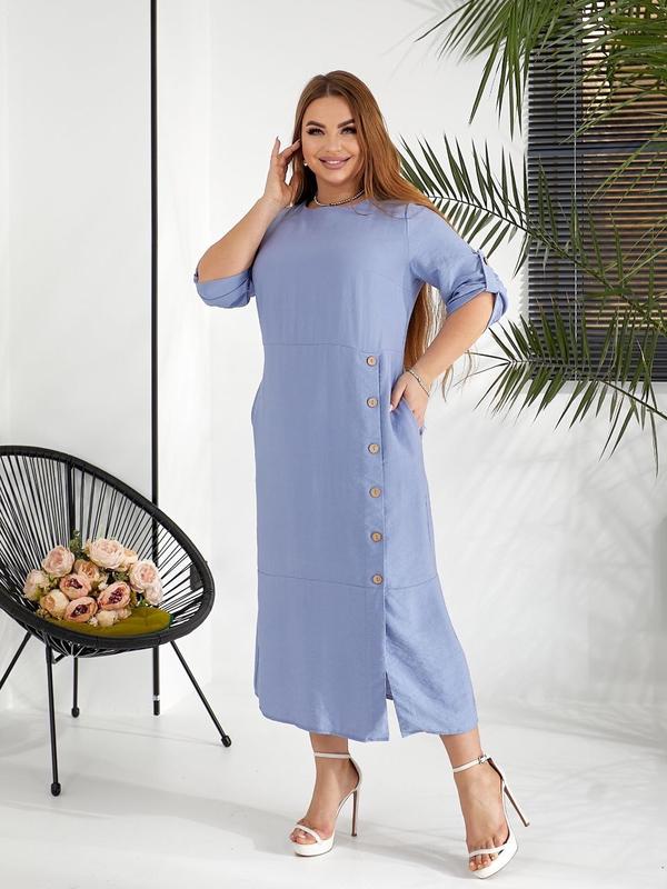 Сукня №Г769-84 Довга однотонна сукня, прикрашена гудзиками. Сезон: весна/лето Ткань: полированный лен При выборе размера обязательно ориентируйтесь на замеры готового изделия. Замеры готового изделия: 52 ОГ 108, ОТ 104, ОБ 120, длина - 130 см 54 ОГ 112, ОТ 108, ОБ 124, длина - 130 см 56 ОГ 116, ОТ 112, ОБ 128, длина - 130 см Размеры: 52, 54, 56 Цвет: голубой, мокко, оливка, черный