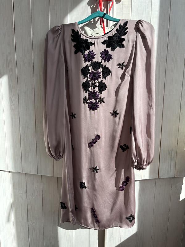 Платье украинского бренда Over the sea, материал с шелком, цвет красивый припиленный-баклажоновый. Нашитые аппликации.