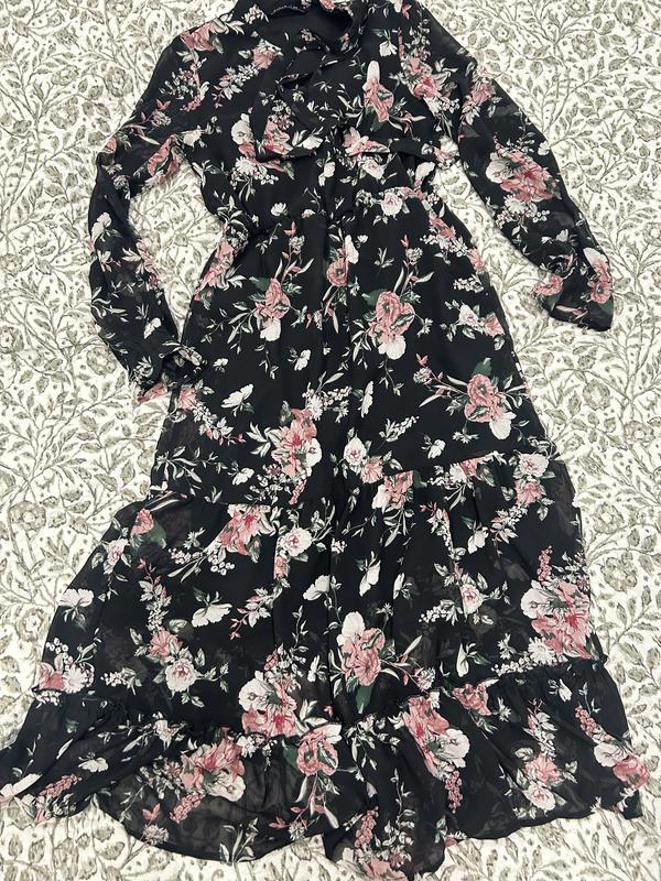 Прекрасное платье в цветочный принт. Стан идеален. Пояс на резинке, поэтому подойдет и на размер с и м.