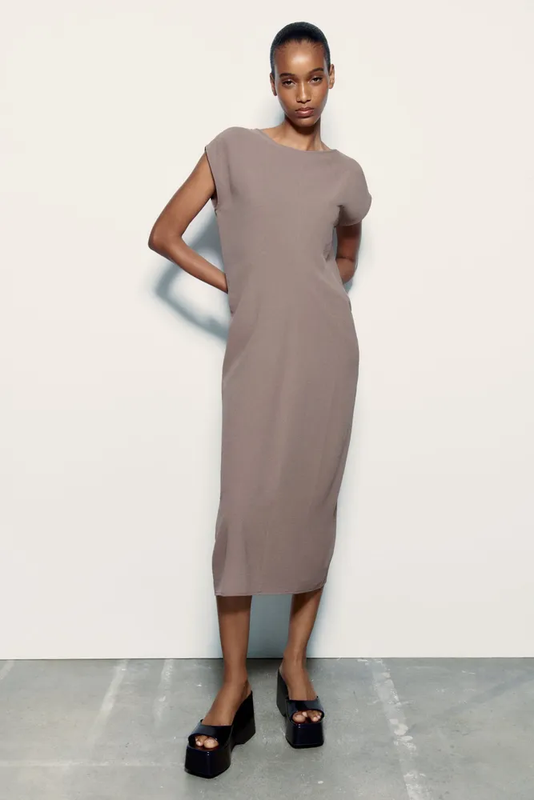 ********** ОПИС Платье миди из эластичного трикотажа с круглым вырезом и короткими рукавами. СОСТАВ: 100% полиэстер РАЗМЕРЫ В НАЯВНОСТИ: S: общая длина от плеча – 116 см, шир. по спинке (ПОГ) – 50см, шир. в районе талии – 44 см, шир. в рай. бедер (ПОБ) – 50см, дл. пл.шва – 15см. M: общая длина от плеча – 118 см, шир. по спинке (ПОГ) – 52 см, шир. в районе талии – 46 см, шир. в рай. бедер (ПОБ) – 52 см, дл. пл.шва – 16см. L: общая длина от плеча – 122см, шир. по спинке (ПОГ) – 56см, шир. в районе талии – 48см, шир. в рай. бедер (ПОБ) – 56см, дл. пл.шва – 17см.