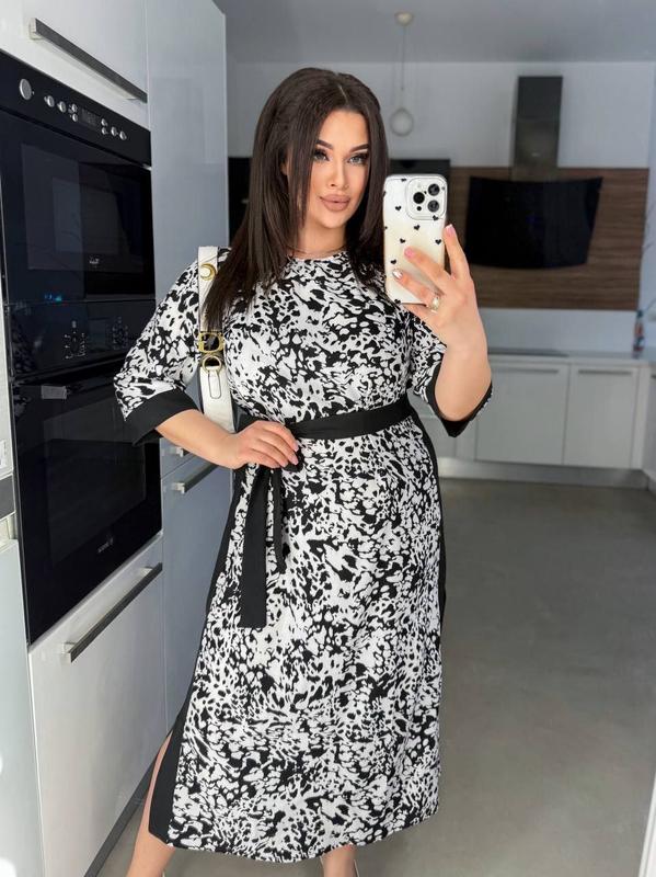 Нарядное принтованное платье миди батал софт легкое платье с разрезами