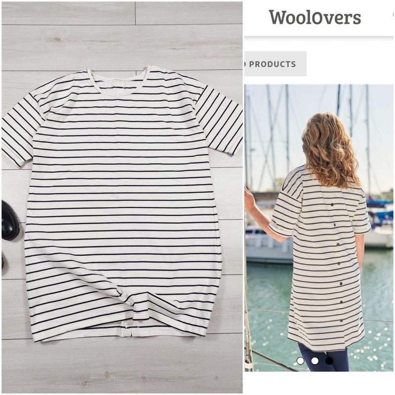 Оверсайзное полосатое платье Woolovers из плотного коттона, по спинке планка с пуговицами и небольшой разрез. Бирка XL,хорошо садится и на XXL см.замеры. Стан - идеальный Длж.97см Пог 64см Поб 69см Цвет молочный в темно-синюю полоску
