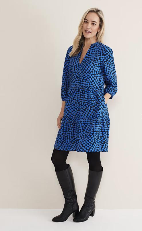 Наше потрясающее платье с принтом любовных сердечек нового цвета. Разработан с женственным зубчатым вырезом, модными блузными рукавами и многоярусной юбкой. Стиль с солнцезащитными очками и кроссовками или колготками и ботинками. Размер