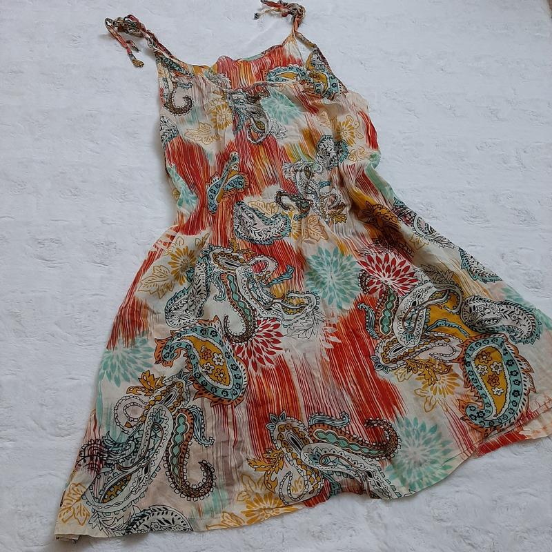 Невероятно легкое платье, сарафанчик на бретелях. Размер М, но будет и на С, не ощутима на теле и полностью натурального состава.