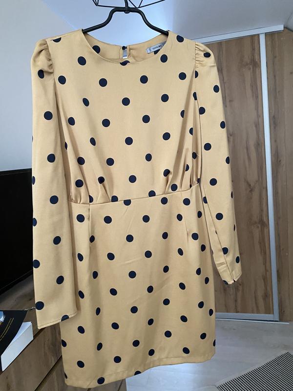 Платье в горошки, с красивой спинкой.
