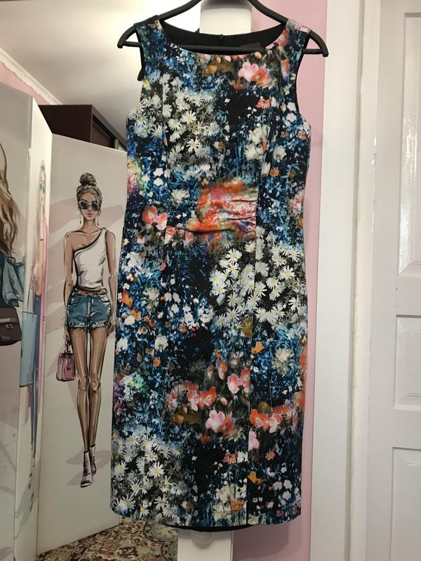 Летнее платье миди на подкладке бренда S.Oliver в отличном состоянии. Красивый цветочный принт, качественная ткань (без бирки с составом), сзади молния 54см. ПОГ - 42см, ПОТ - 37см, ПОС - 45см, длина - 95см.