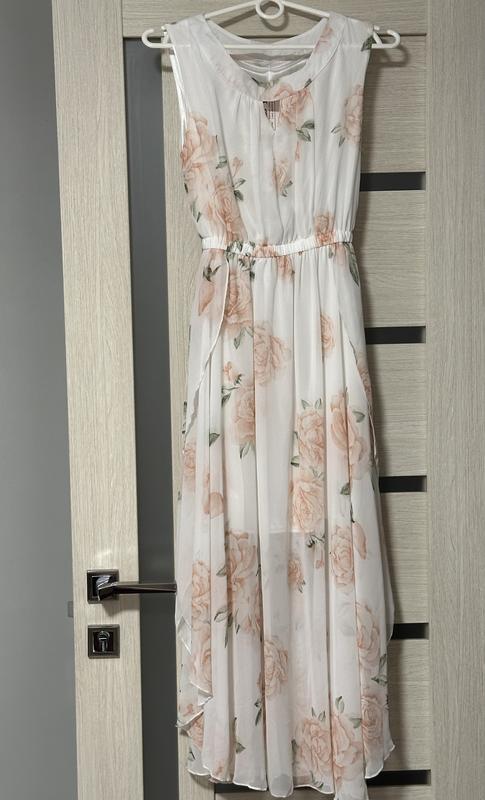 Шифонове ніжне плаття. Талія на резинці. Має підкладку Юбка має розрізи по боках, що дуже ефектно виглядає при ходьбі,розвіюючись. Плаття нове. Розмір S-M . Об. гр. 88 см. Об. т. по резинці 88 см. тягнеться до 88 см. Довжина виробу 120 см. Плаття було 1000 грн. останній колір і модель тепер продається за 480 грн.