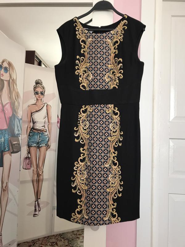 Красивое платье миди с орнаментом бренда London Times в отличном состоянии. Качественная плотная ткань, верх с подкладкой. Орнамент с обеих сторон. Сзади молния 58см. ПОГ - 49см, ПОТ - 40см, ПОС - 52см, длина - 94см.