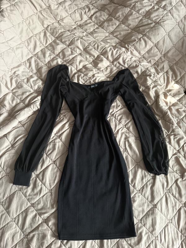 Стильна чорна сукня з довгими прозорими рукавами. Елегантний крій підкреслює фігуру, роблячи образ витонченим та жіночним. Ідеально підійде для вечірніх виходів або особливих подій. Стан чудовий! Одягалась один раз Розмір XS-S