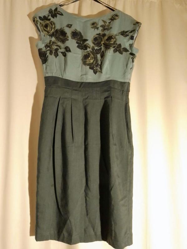 Платье зеленое 10 с деми шерсть подкладка, розы принт, молния, деловое