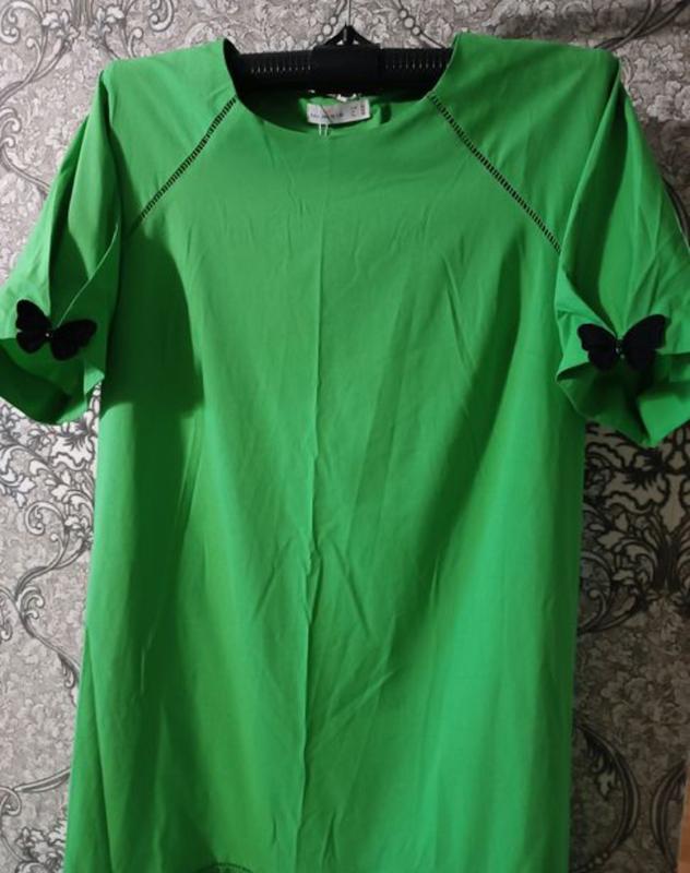 Красивое нежное платье, подойдет как для нарядной одежды так и для повседневной. На ог от 120 до 128 см, длина перед 117 см, зад 127. Качество супер, легкий каттон, нежное и приятное к телу. Турция. Цвет - зеленый.