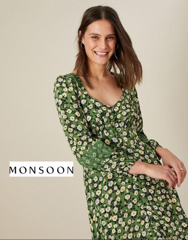 Бомбическое платье от monsoon. Выглядит очень классно. Насыщенный зеленый травяной цвет. Усыпана вся цветами. В талии сзади резинка. Бирочку я срезала, 100% вискоза. Вискоза плотная. Не ношена. Очень красивая линия декольте. Не глубокая. Застегивается на пуговицы, под пуговицами планка, поэтому не просвечивается. Подходит на М/Л Длина 115 см. Полуобхват груди 47 см, но подойдет и на большие! Потому что в груди защипы. Может подойти примерно на полуобхват до 52, 53 см благодаря защипам. Плечи 37 см. Полуобхват талии 39 тянется(сзади резинка) до 46 см. Рукав 58 см Можете оформлять доставку НЕ спрося о наличии
