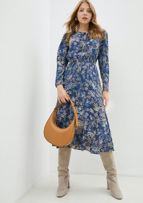 Платье ярусное миди длинное в цветочный принт джинсовый цвет от marks&spencer
