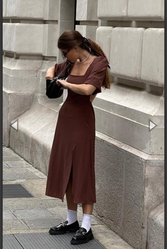 Сукня з відкритою спинкою, з розрізом по ніжці Шоколадного кольору Розмір L Пог 46, пот 37 ззаду на резинці, поб 53, довжина 121
