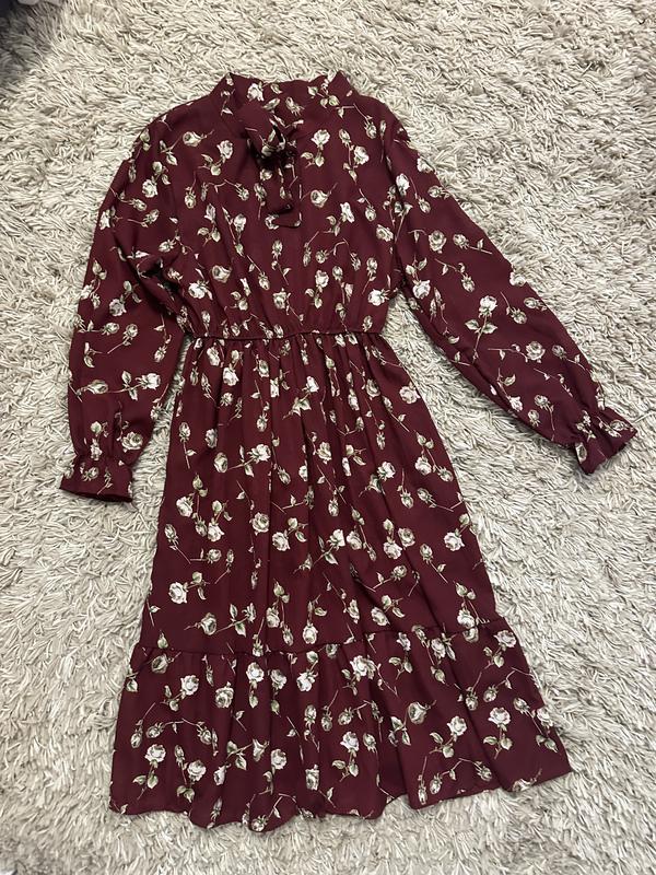 Розмір фактично С-М, заміри: ширина в грудях – 98 см, ширина плечей – 40 см, довжина рукава – 56 см Довжина сукні - 100-102 см Вдягала 1 раз, стан нового