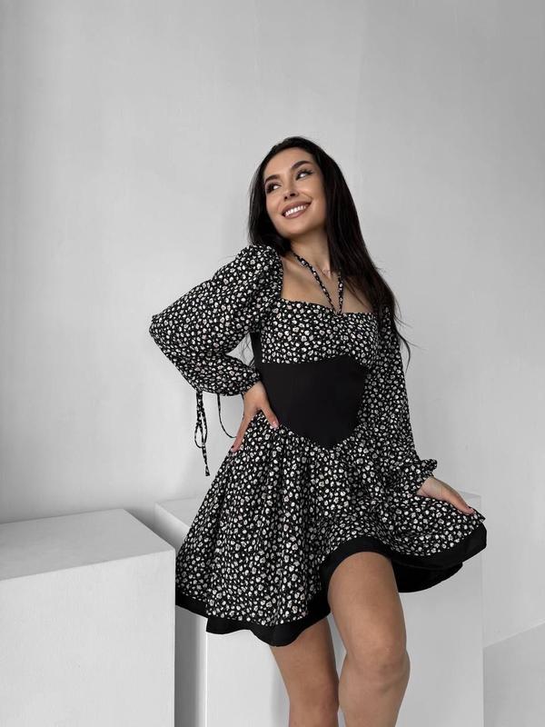 Платье Софи (Фотто приема) ▫️Мод: 0651 ▫️Ткань: Турецкий софт ▫️Цвета: черный, красный,голубой ▫️Размеры: 42/44 46/48 Очаровательное, цветочное платье софи с длинным регулируемым рукавом, корсетным поясом, лямочкой для декольте и пышной асимметричной двухслойной юбочкой мини Идеально с косухами, жакетами, как с грубыми ботинками так и с каблуками Создавай неповторимые образы с нами
