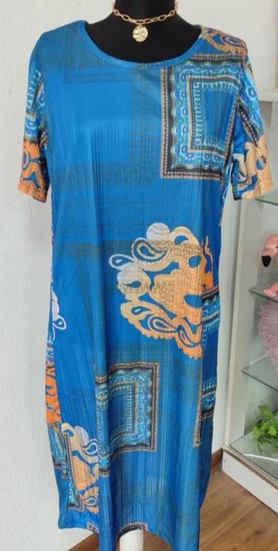 Платье летнее на размер L/XL: ПОГ - 54см, ПОТ - 53, ПОБ - 58см, рукав - 23см, длина - 108