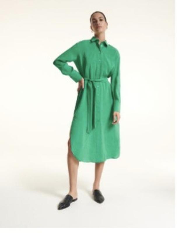 Платье рубашка Reserved, размер М, очень хорошая ткань, текстура как бархатистая, красиво спадает, замеры по изделию: размер М, плечи 43, по груди 55, бедра 60, рукав 57, талия 57, длина 122, разрез 30 см, есть карманы, пояс, состав на фото. В наличии красивый малиновый и зелёный цвет.