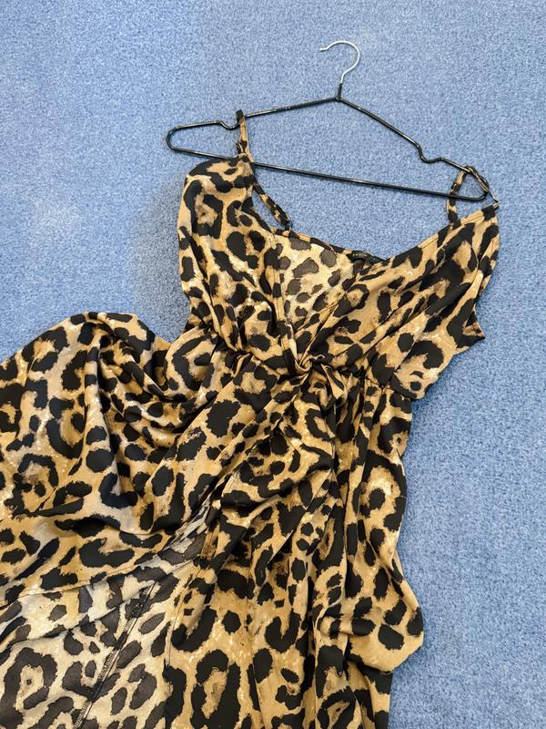 Платье на брителях, с леопардовым принтом от марки SHEIN. Подойдет на девушек больше, чем размер S. Около M,L.