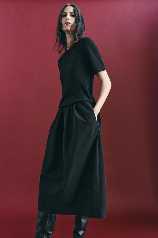 Платье средней длины ZARA Платье с круглым воротником и короткими рукавами. Деталь из ткани в тон. В наличии размер М, новые, с бирками, оригинал 💫 Длина верхней части 57 см верх, длина нижней части 80 см, полу ширина подмышками 45 см, ткань эластичная, тянется, пояс резинка
