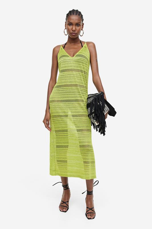 Коллекция шведского бренда Н&М "Весна/Лето 2025 года": полупрозрачное платье-футляр из сетки с V-образным вырезом оливково-зеленого цвета. 🫒 Платье-сетка длиной до икр, облегающее, с глубоким V-образным вырезом и регулируемыми бретелями-спагетти. Прямой покрой с высоким разрезом сбоку. Без подкладки. Длина миди. Стиль просвещающийся. Концепция - повседневная мода. В наличие платье в размере согласно бирке XS, на рост 160 см и грудь 80А. Фактически большемерит, подойдёт на размер S, S/M. Сделаю замеры. Цена на официальном сайте Н&М 299 шведских крон.