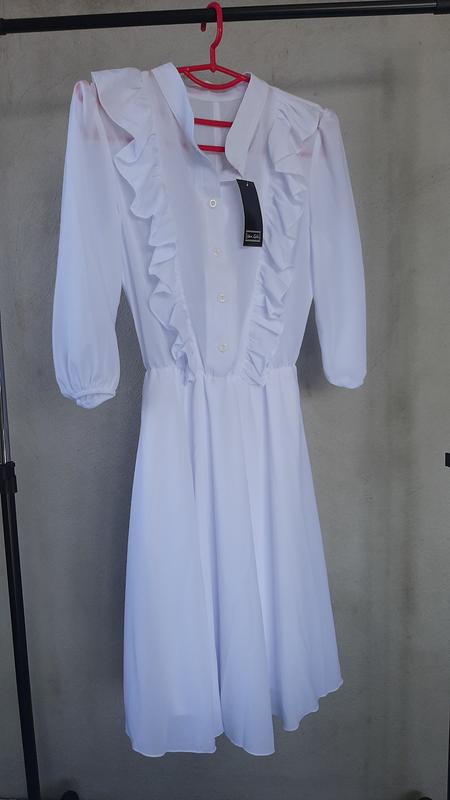Шифоновое белое платье длины миди, пояс на резинке, рукав 3/4.