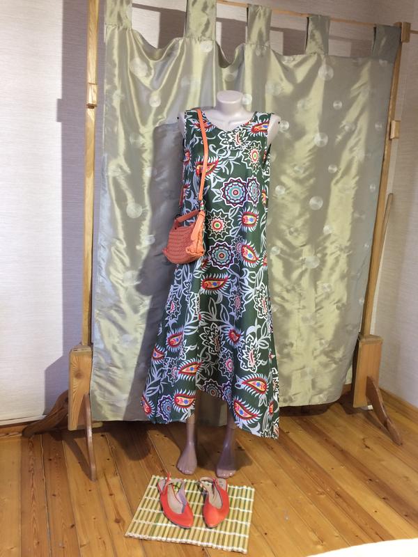Летнее платье макси цветочный принт. Цвет на фото удалось передать. цвет такой же яркий. насыщенный. Самая легкая, просто невесомая, не светится. Состав замечательный, см. на фото. Довжина 117 см. ПОГ 52 см, ПОС. 68 см, ширина подолу 100 см