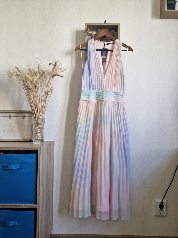 Сукня Guess Размер М Полуобхват груди - 41 см Полу обхват талии - 36 см Длина по спинке - 119 см Низ юбки без оверлока. Есть проблемы с молнией, добавлены фото.