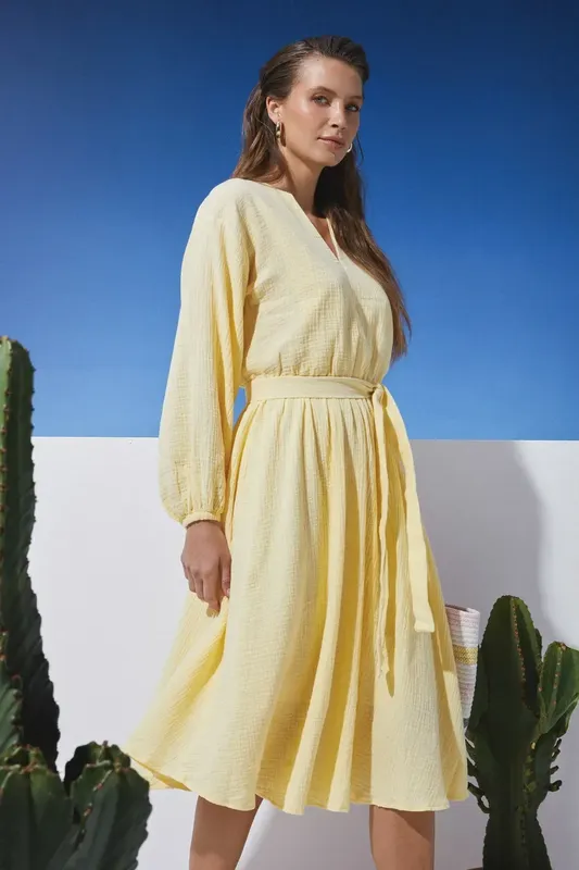 Женское легкое платье из муслина на подкладке с поясом в комплекте