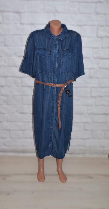 Платье джинсовое с боковыми разрезами и карманами "NEXT" размер-16 состав: 100% лиоцель состояние-новой вещи (рукав-43, подмышки-56, от плеча до талии-47, талия-50, бедро-59, длина-117)