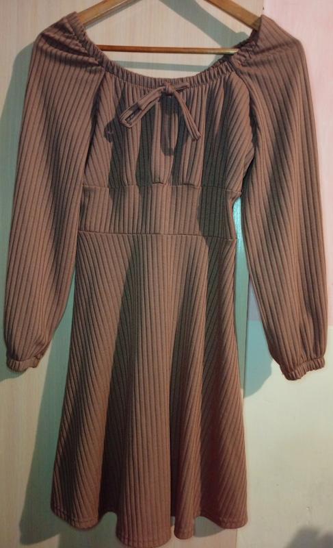 Бежевое платье – элегантное, свободного кроя, с длинными рукавами и сборкой на груди с завязкой, размер L. Цена 350 грн, возможен торг.