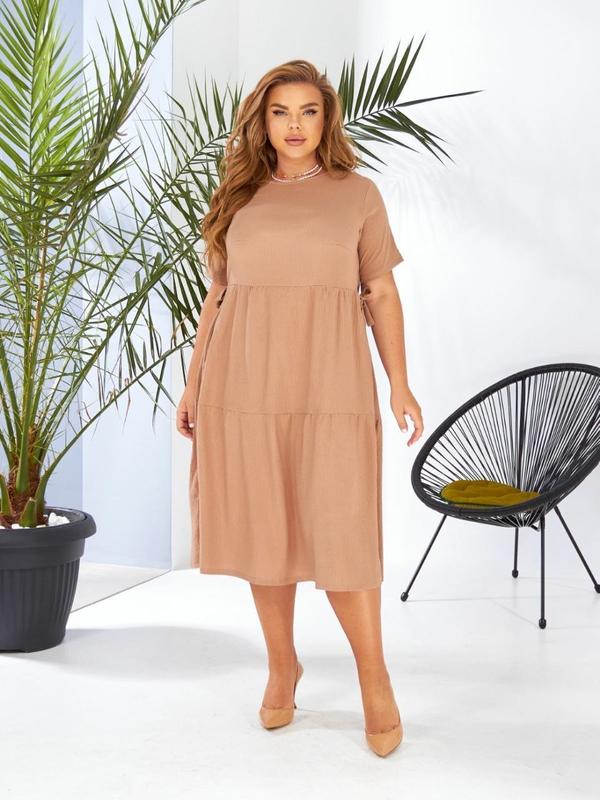 Сукня Арт.-17170 Размеры- 50-52 54-56 58-60 Ткань- Американский креп Цвета- бежевый Платье в стиле Бохо, сочетание комфорта и элегантности.Силуэт свободный,объем талии регулируется за счет боковых пасчков. Длина платья миди. В боковых швах есть карманы. Ткань очень легкая и приятная на ощупь. Ориентировочное измерение готового изделия : Р-р. 50-52 ОГ до 116см ОТ до 120см ОБ до 140см Дов.рукава 23 Об.проймы 48 Ширина рукава 36 Ширина по спине 41 Дов.платье 118см Р-р 54-56 ОГ до 120см ОТ до 124 см ОБ до 150см Длина рукава 24 Об. пройми 50 Ширина рукава 38 Ширина по спине 43 Дл платья 120 Р-р 58-60 ОГ до 128 ОТ до 132 ОБ до 160 Дов.рукава 25 Об проймы 52 Ширина рукава 42 Ширина по спине 45 Дов.платье 123 /На фотомодели размер 50-52/
