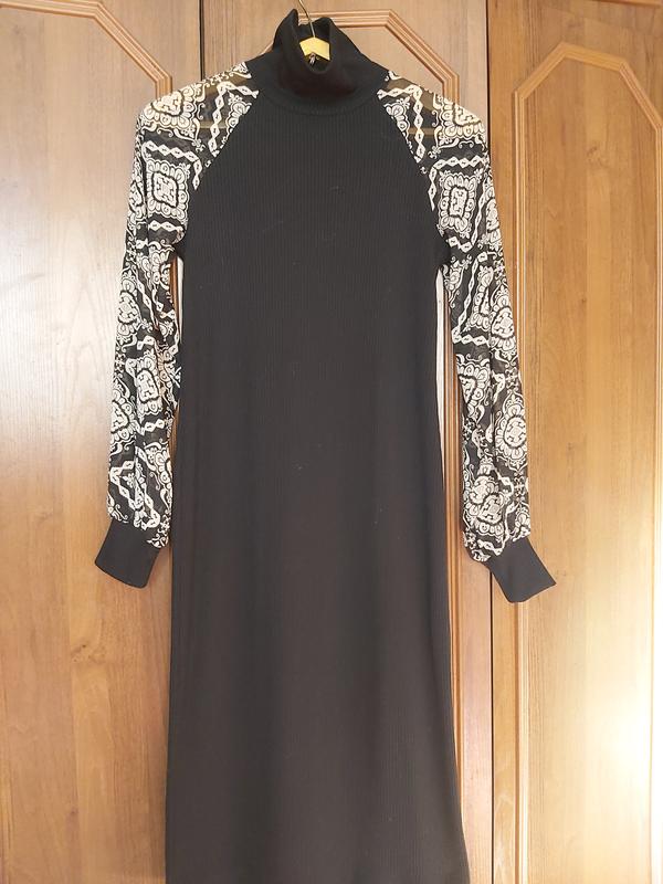 Дуже гарне платтячко. Тканина якісна, чудовий склад, який запобігає кошлатенню та розтягуванню тканини. Напівпрозорий рукав додає елегантності та стилю! Заміри скину.